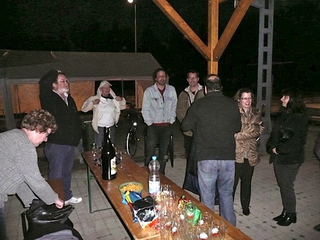 Traditionen wollen gewahrt sein. Wenn wir schon ein Dach aufschlagen, muss es auch ein Richtfest geben. Sogar mit Richtbaum, gesponsort von Emma. Spontan lud Jürgen dazu ein und brachte auch das passende Getränk in der handlichen 3 Liter Flasche mit.