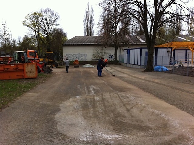 Heute waren ein paar Mitarbeiter der Stadt Wiesloch mit schwerem Gerät da und haben unser terrain libre angelegt. Das ist toll geworden. Viel zu schade für Parkplätze!!!