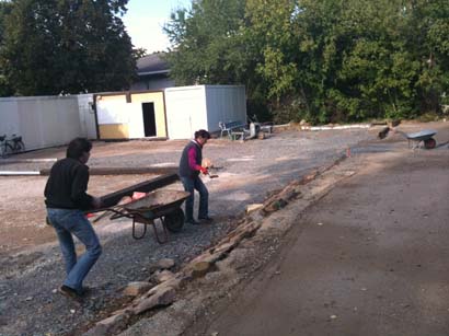 Das schöne Herbstwetter muss unbedingt gut genutzt werden. So finden dieses Wochenende verschiedene Arbeitseinsätze gleichzeitig statt. Pflasterer Erwin aus Malsch und sein Team verlegten die Steine zum Toilettencontainer und auf der Terrasse und taten uns damit einen riesigen Freundschaftsdienst!