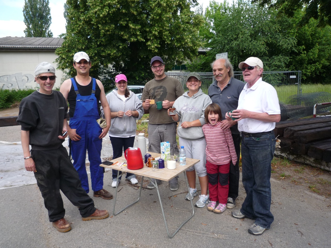 Capo Mani lud zur Aktion Saubere Balken. Amtshilfe leistend kamen auch Crossgolfer: Flo, Elli und Philip. Herzlichen Dank dafür! Insgesamt waren wir damit zu acht. Auf der Aufgabenliste stand Balken von Metall befreien, säubern mit Stahlbürste und Feger, grundieren und imprägnieren. Schnell fand das Team seinen Rhythmus. Während die einen mit Kneifzangen und Stahlbürsten hantierten, schwangen die anderen die Pinsel. Am Ende des Tages hatten wir die Hälfte geschafft.